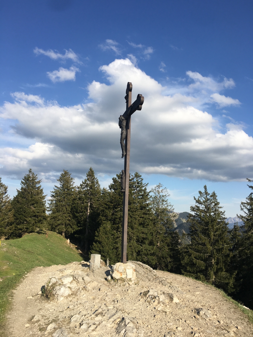 Wer etwas abenteuerlicher unterwegs ist, kann nach rund 200m links bergauf steigen, um dem ausgesetzten Gipfelkreuz einen Besuch abzustatten.