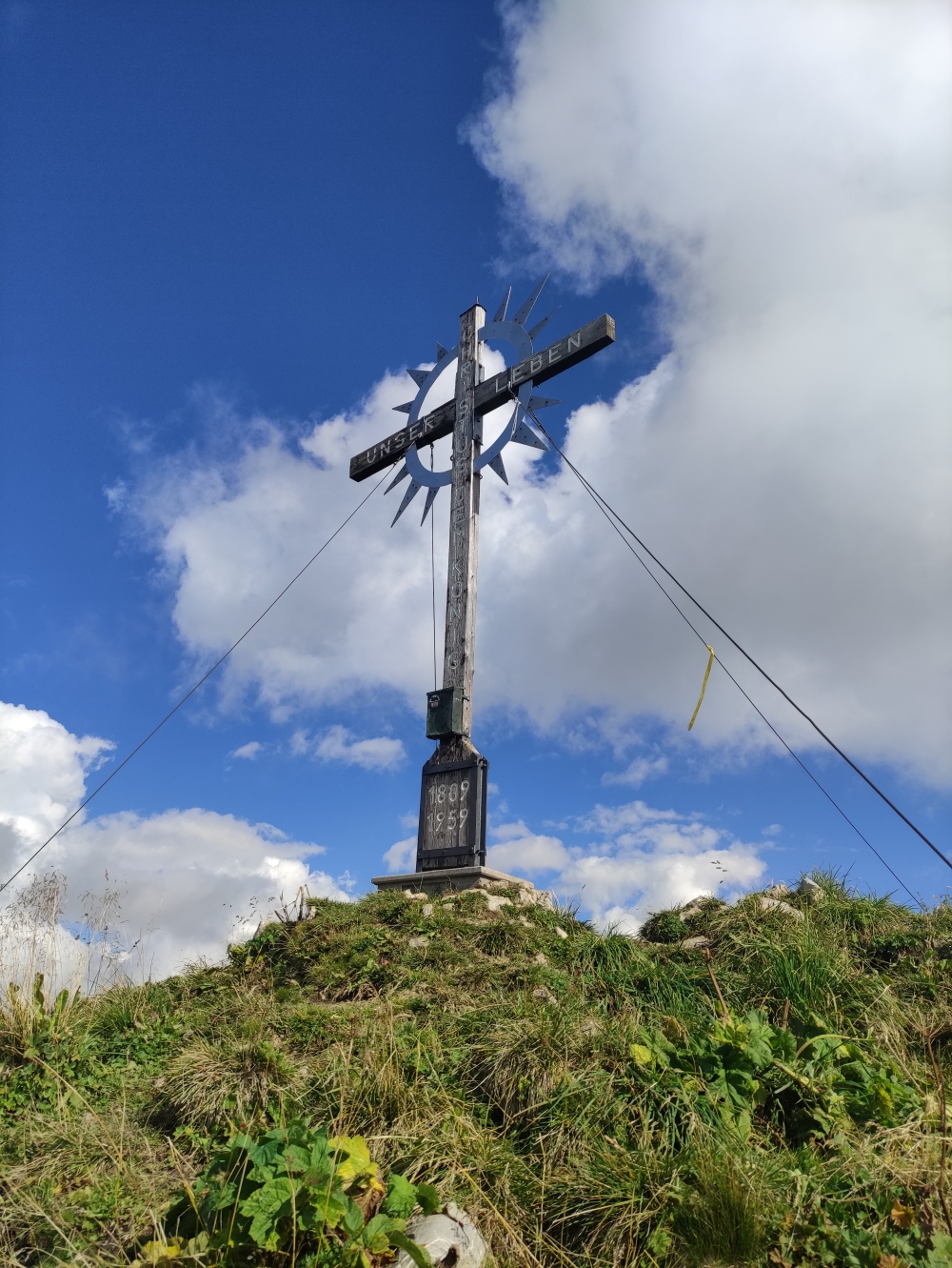 Nach knapp zwei Stunden erreichen wir das Sommerbergjöchle mit dem fotogenen Wegweiser.