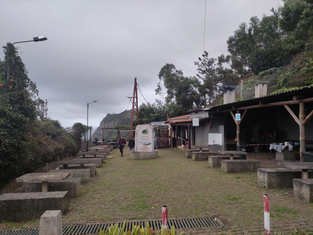Nach links führt jedoch ein alter Pflasterweg hoch zur Klippe an der das Restaurant Cabo Aereo auf Gäste wartet. Der Name kommt von der noch in Resten erahltenen Materialseilbahn.