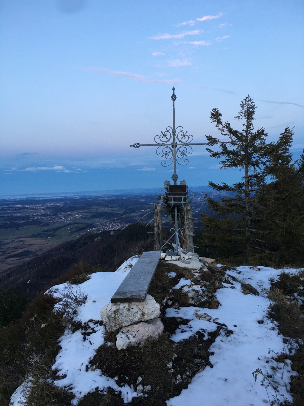 Ein kleiner Gipfel mit Metall-Gipfelkreuz samt Gipfelbuch, der von Westen und Osten auf deutlichen Pfaden erreichbar ist. Das Chiemgau-Panorama kann man hier meist allein genießen.