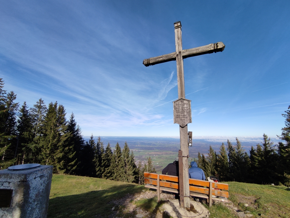 Vom Farrenpoint hat man einen großartigen Blick von Bad Aibling und Rosenheim über den Samerberg und Hochries bis zur Kampenwand und dem Kaisergebirge.