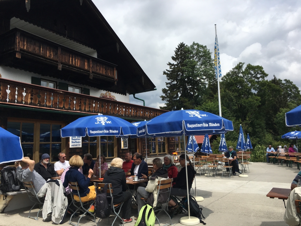 Am Ziel dieser knapp vier stündigen, mittelschweren Rundtour "Wanderung Große Eckbauer-Runde" kann man auf 1239 Metern einkehren und essen. Vom Start beim "Skistadion Garmisch" auf 735m bei Garmisch-Partenkirchen sind rund sechshundertdreißig Höhenmeter zum Ziel Berggasthof Eckbauer zu überwinden. Danach sind bis zum Ende (Skistadion Garmisch) noch rund neunzig Höhenmeter zu überwinden.Auf der Wanderung kann man am Ziel der Tour einkehren.