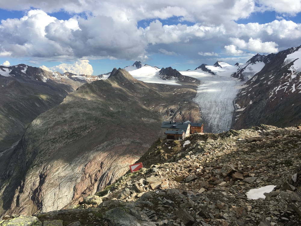 Etappe 1 (Obergurgl zur Langtalereckhütte) - Etappe 2 (Langtalereckhütte zum Ramolhaus) - Etappe 3 (Ramolhaus nach Obergurgl)Am zweiten Tag der Gurgler Runde steht die eindrucksvolle, wenn auch aufgrund des steten Rückgangs wehmütige, Gletscherüberschreitung an. Ohne Hochtourenausrüstung gehen wir auf dem Wanderweg von der Langtalereckhütte zum Ramolhaus.