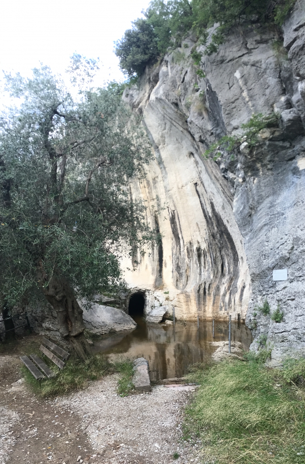 Zurück an der Gabelung gehen wir geradeaus und steigen unter den Felswänden hinab nach Torbole. Auf der Fahrstraße gehen wir aber nicht links zum Gardasee, sondern rechts ortauswärts.