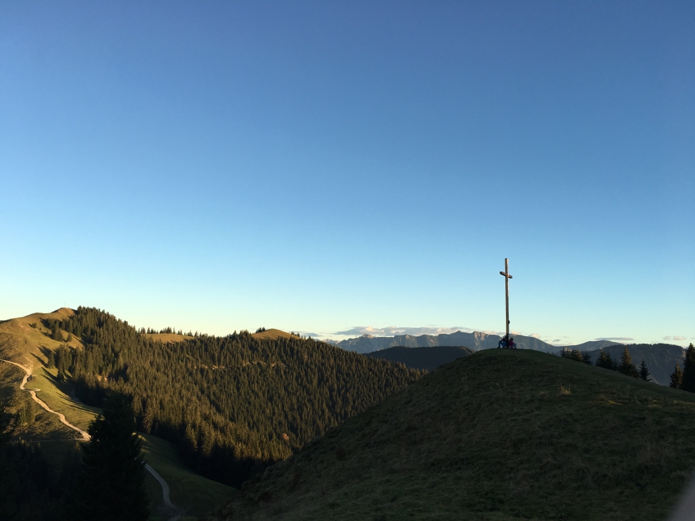 Um den Kammweg rechterhand zu erreichen müssen wir noch einen größeren Bogen auf der Fahrstraße bis zu deren Ende gehen. Weiter geht es auf einem netten Steig über den Kamm zur Hörnlehütte.
