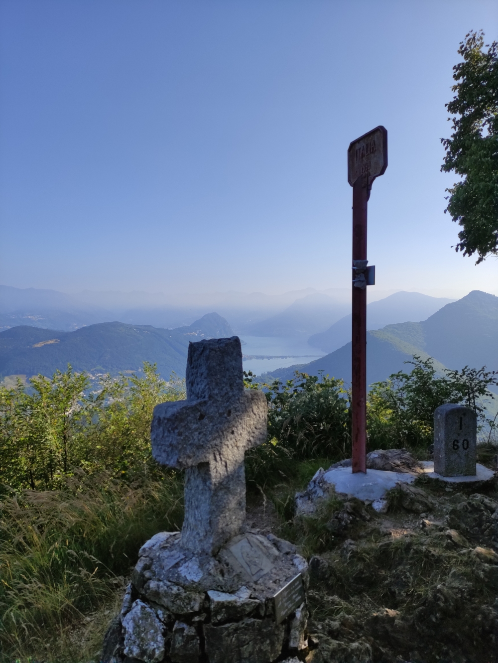Hier blicken wir abermals auf den Luganer See und können noch einen kurzen Abstecher zum gleich hohen Poncione d'Arzo nebenan machen, der jedoch über keine Aussicht aber dafür über ein Paar Beton-Clogs.
