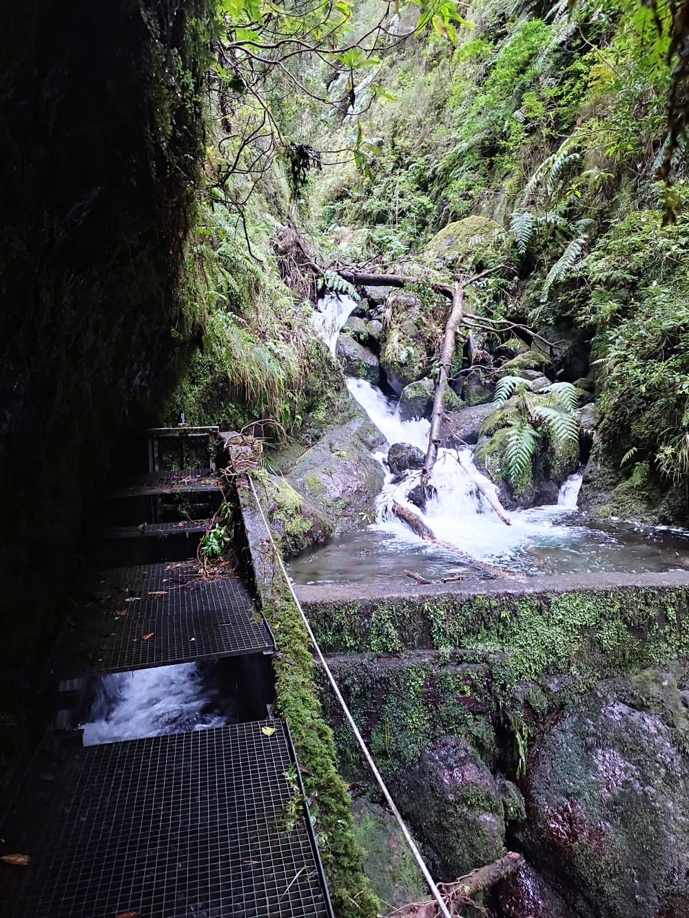 Der letzte Tunnel ist einen Kilometer lang und erfordert rund 20 Minuten (einfach) Gehzeit. Auch hier muss man sich an die Felswand schmiegen um nicht in die Levada zu fallen. Da das obere Ende (also der Start) nicht wirklich sehenswert ist lässt man den langen Tunnel vielleicht einfach weg.