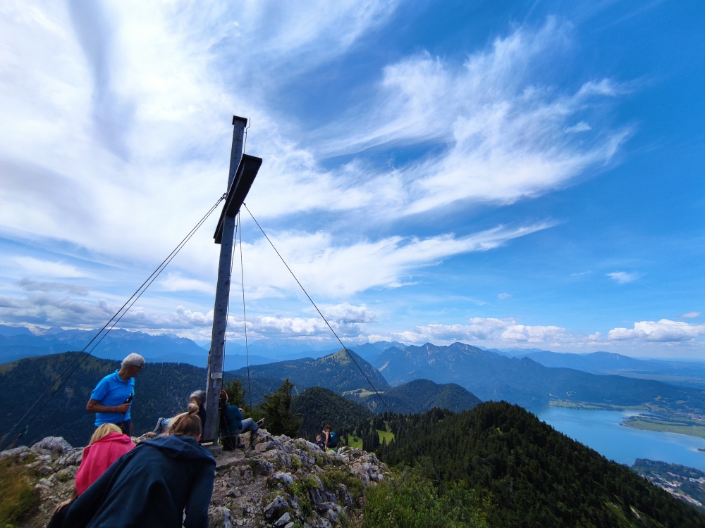 Vom Gipfel des Rabenkopf mit schönem Ausblick geht es wieder retour zur bewirtschafteten Staffelalm hinab und über die Pessenbacher Schneid wieder zurück zum Parkplatz.