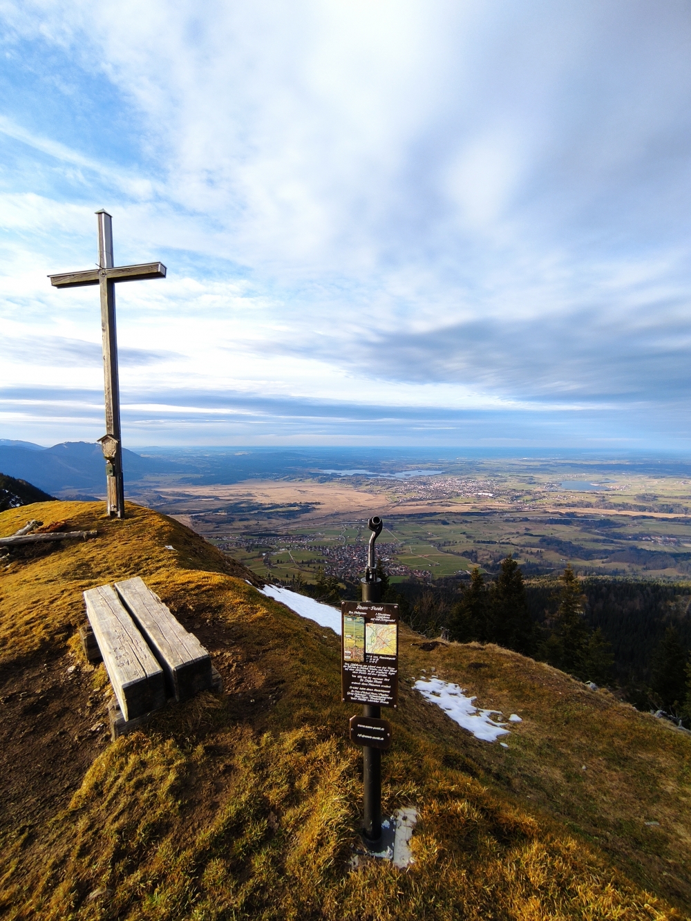 Ruhiger Nachbar von Heimgarten. Durch ein kleines Fernrohr kann man über drei in einer Linie aufgereihte Kirchtürme bis zum Staffelsee sehen.