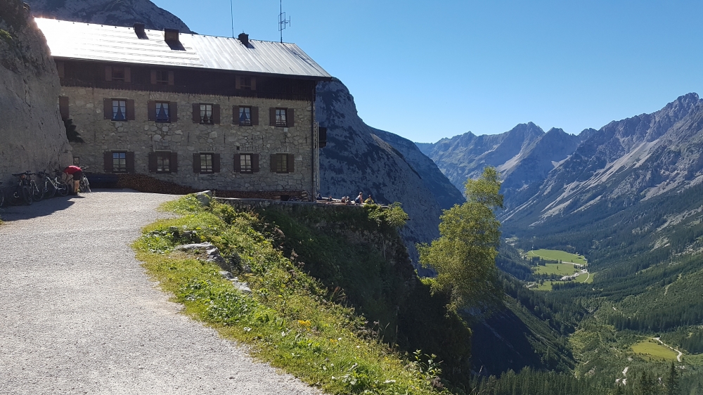 Am Ziel dieser etwa vier einhalbstündigen, mittelschweren Tour "Wanderung Scharnitz zum Karwendelhaus" kann man auf 1771 Metern einkehren und essen. Vom Start "Scharnitz Bahnhof" auf 964m bei Scharnitz sind immerhin rund achthundertzehn Höhenmeter zum Ziel Karwendelhaus zu überwinden.Auf der Wanderung kann man am Ziel der Tour einkehren.