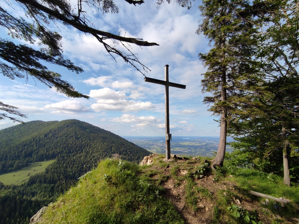 Kurze Tour zum Gipfel des Abgesehen von dieser Kante direkt hinter dem Gipfelkreuz ist die Tour nicht ausgesetzt. Vom Wanderparkplatz starten wir auf der Teerstraße bergauf Richtung Schlipfgrubalm. Nach der Brücke über den Kirchbach geht es links durch das zweite Gatter. Weiter geradeaus in den Wald und rechts auf die Forststraße. Von dieser zweigt im oberen Teil der Pfad zum Gipfel ab.