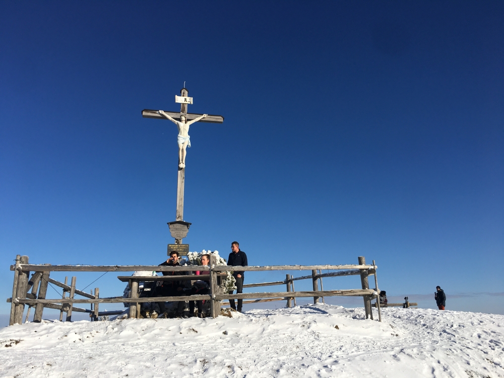 Über den im Winter manchmal vereisten Steig nach links erreichen wir in rund 10 Minuten den Gipfel.