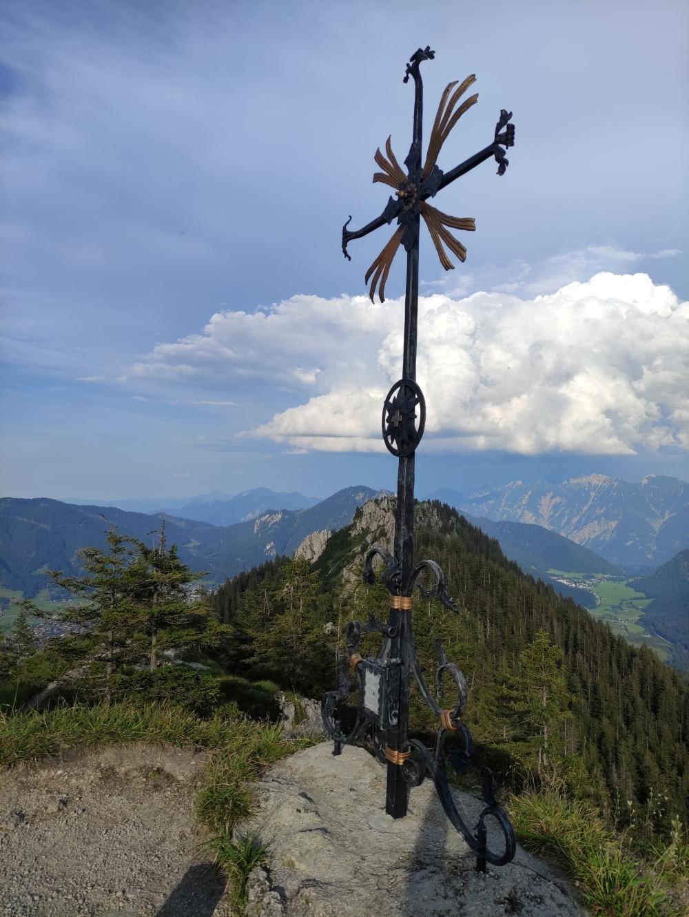Wir erreichen den Anstieg vom Kolbensattel zum Sonnenberg und gehn nun auf dem schmalen, drahtseilgesicherten Sonnenberggrat-Weg am Sonnenberg vorbei zum Pürschlinghaus. Ein kurzer kraxeliger Abstecher führt optional zum Gipfelkreuz auf dem Sonnenberg.