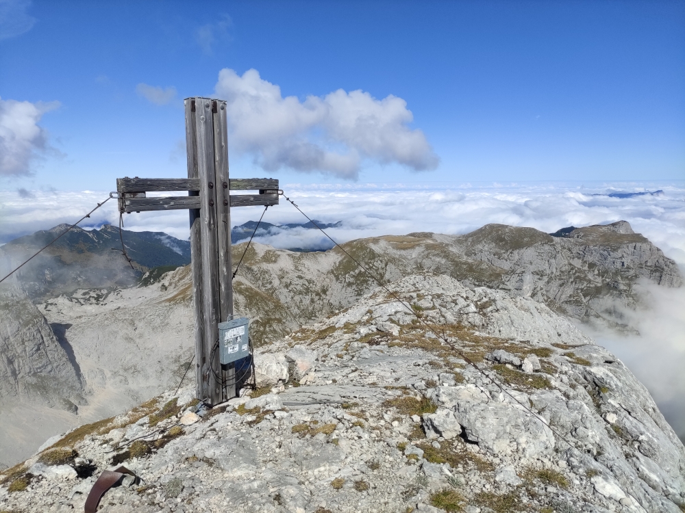 Ein toller Berg ohne Eisen mit sensationellem Blick. Besonders sicht der direkte Nachbar im Osten, der Hochkalter hervor. Die Watzmann-Mittelspitze ist dahinter erkennbar.